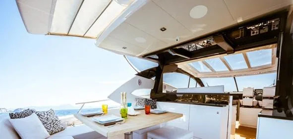 • Smart Lighting & Shades: Effortlessly control cabin lighting and deck shades from intuitive touch panels or mobile devices, creating the perfect onboard ambiance.