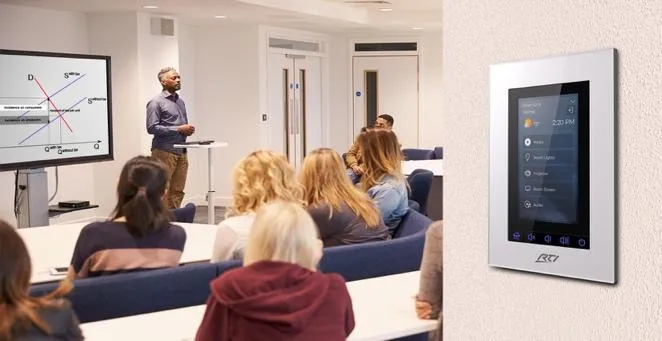 Simplify meetings with one-touch control for AV, lights, and blinds—plus smart booking and occupancy detection.